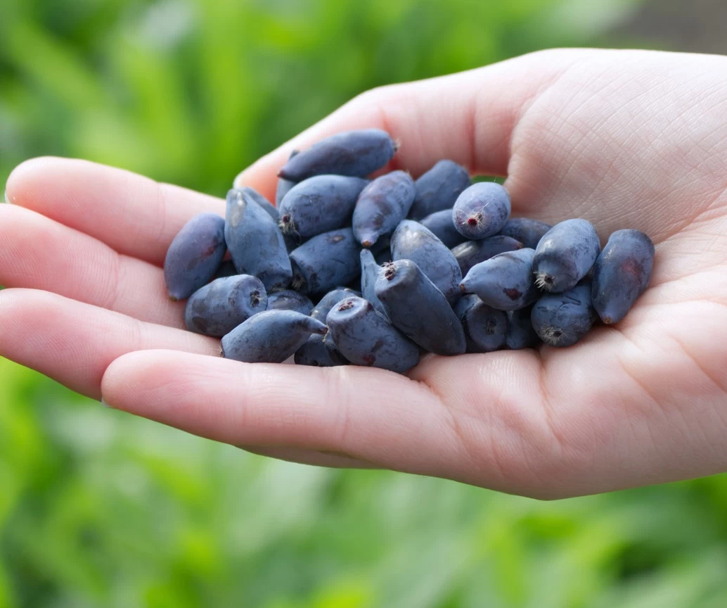 Fruchte/Blüte: Schon im Februar/März liegt die Blütezeit der aus Sibirien stammenden Beerenpflanze. Frühe Bienen freuen sich sehr über die reiche Nahrungsquelle. Weder die Blüten noch das Holz sind frostgefährdet. Ab Mai reifen bereits die ersten Früchte, welche nach und nach bis weit in den Juni geerntet werden können. Aufgrund der frühen Reifezeit wird die sibirische Blaubeere oft auch Erstbeere genannt, denn sie eröffnet die Saison unter den Beerenobstgehölzen. Die Frucht der Sorte `Altaj´ ist groß, länglich und süß-säuerlich im Geschmack. Ähnlich den Heidelbeeren sind die Früchte vor Allem für den Frischverzehr geeignet, da sie nur bedingt lagerfähig sind, können aber auch zu verschiedenen Kreationen wie Smoothies, Saft, Marmelade, etc. weiterverarbeitet werden und lassen sich auch gut einfrieren, um später verzehrt/verarbeitet zu werden. Erste Erträge werden meist bereits im Jahr nach der Pflanzung ausgebildet. Für einen guten Ertrag sollten, zugusten der gegenseitigen Befruchtung, zwei verschiedene Sorten gepflanzt werden, sofern keine weiteren Honigbeeren im Umkreis vorhanden sind.