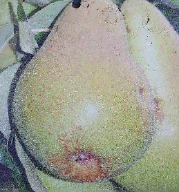 Frucht: Flaschenförmige, gelbliche Frucht mit einer Reifezeit ab Mitte September. Leicht lagerfähig. Süß mit gutem Aroma. Die Blütezeit liegt im April und Mai.