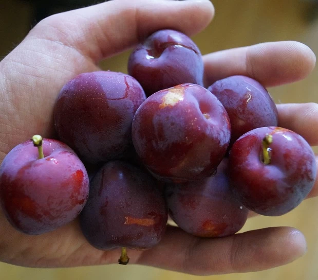Prunus salicina, Jap. Pflaumen sind hierzulande noch weitestgehend unbekannt. In Osteuropa und in den USA beschäftigt man sich seit einigen Jahren mit dieser interessanten Frucht. Grundsätzlich bestechen die jap. Pflaumen durch ihre üppige Blüte, die Fruchtgröße und den hohen Ertrag.Sie sind absolut winterhart und wachsen zu einem mittelgroßen Baum heran.